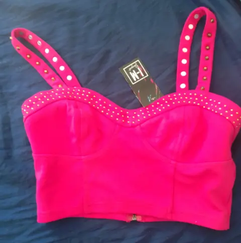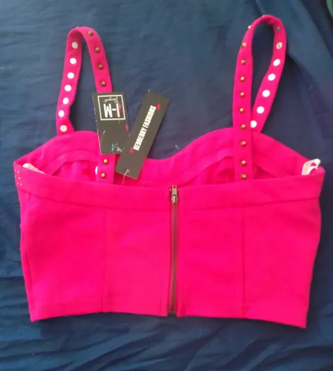 Top fiusha nuevo con etiqueta cuenta con estoperoles en los tirantes y cierre en la parte de atrás, es licra estira y amolda sin problemas