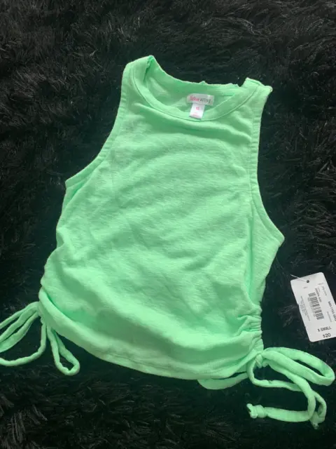Top sin manga Verde Fosforescente. Top blusa sin manga Talla XS extra chica.Nueva Súper linda