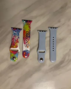 Extensibles para applewatch. Pack de dos extensibles, unos es color baby blue y el otro es de varios, el de varios se despintó y se ve en la foto pero al momento de llevarlo puesto no se nota porque se pierde entre los demás colores, es de 38