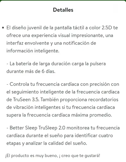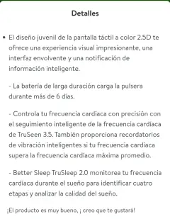 Reloj inteligente HUAWEI BAND 4Excelente diseño, esta super ligerito, solo lo ocupe 2 veces. Se encuentra en perfecto estado, solo cuenta con un pequeño rayon en la pantalla que se alcanza a apreciar en la foto.