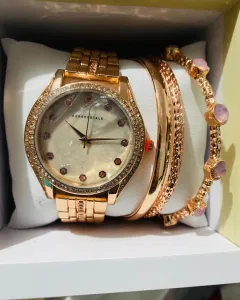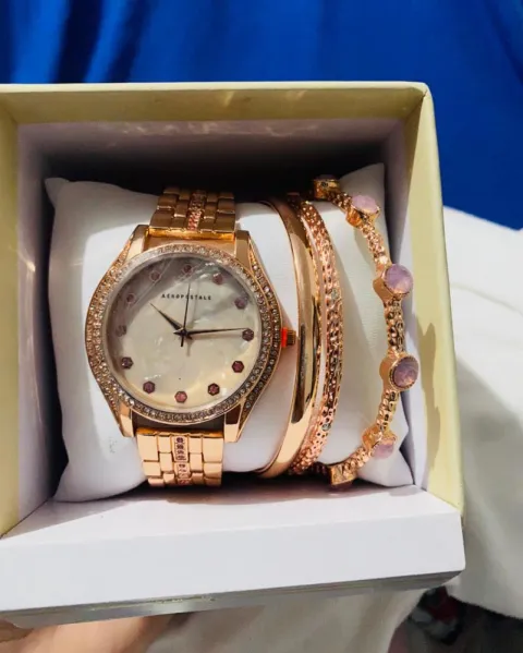 Bonito reloj Aeropostale con 3 pulseras de la marca Color oro rosa Completamente nuevo