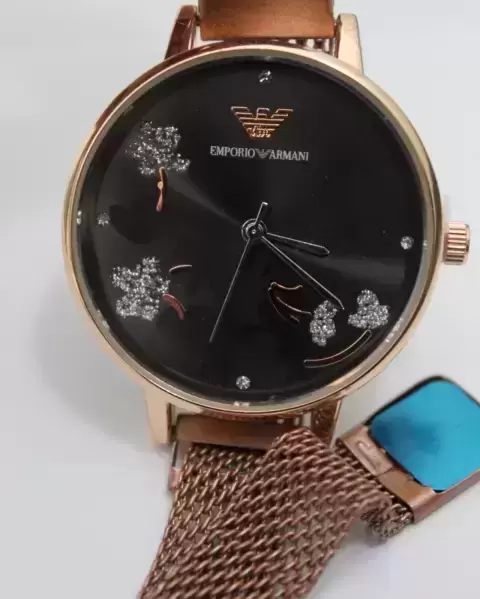 Reloj Armani. Bonito reloj para dama marca ARMANI Con detalle en color cobrizo con correa ajustable magnética y pedrería en color oro rosado, cero detalles 100% funcionando
