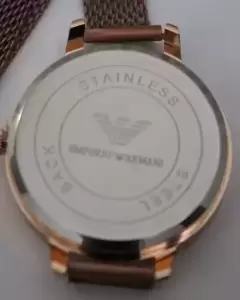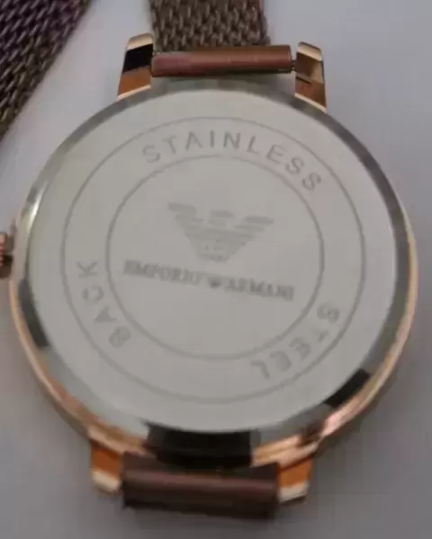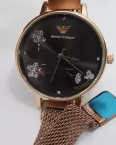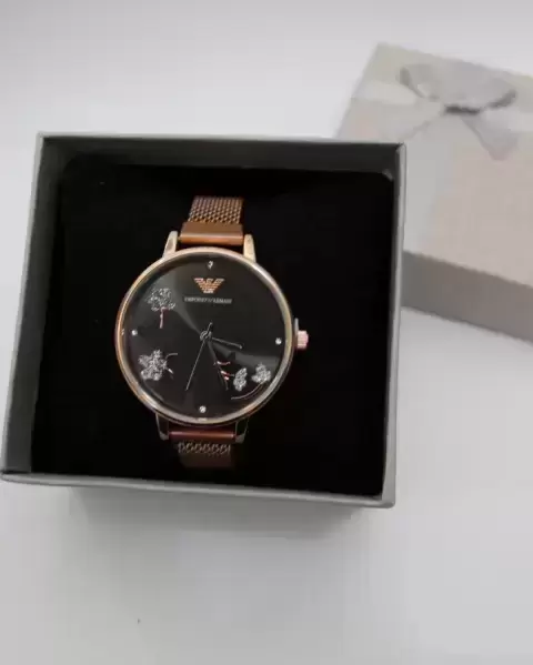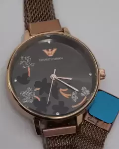 Bonito reloj para dama marca ARMANI Con detalle en color cobrizo con correa ajustable magnética y pedrería en color oro rosado, cero detalles 100% funcionando