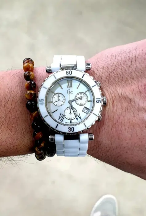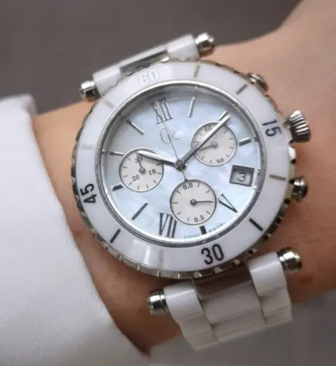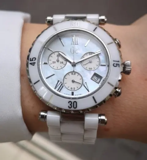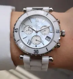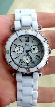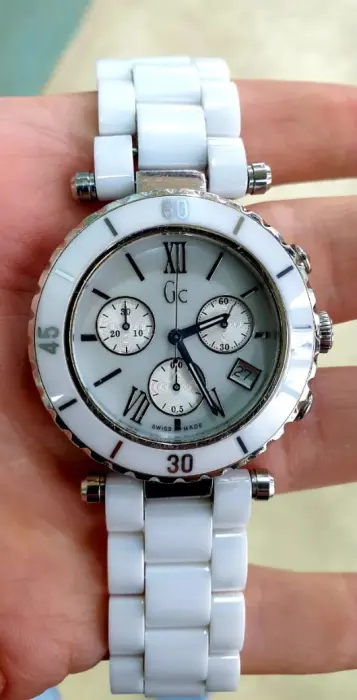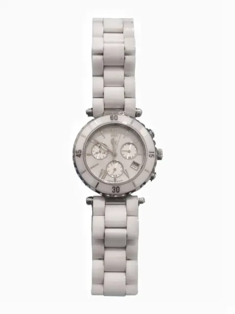 Reloj cronógrafo GC 🤍. Reloj cronógrafo Guess CollectionUnisexModelo 43001MEs un reloj de la colección GC Diver Chic. La esfera de nácar tiene manecillas e índices en tono plateado, así como la correa de cerámica y el bisel también presenta detalles en ese mismo tono. Mecanismo "Swiss Made".Cristal mineral.Correa de cerámica blanca.Esfera de nácarCronógrafo de fabricación suiza.Resistente al agua hasta 100 m.