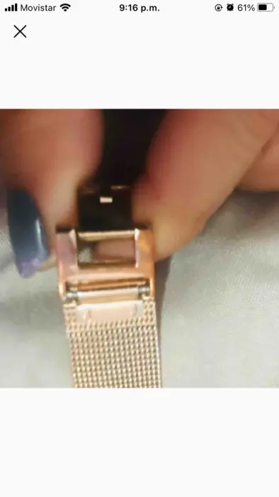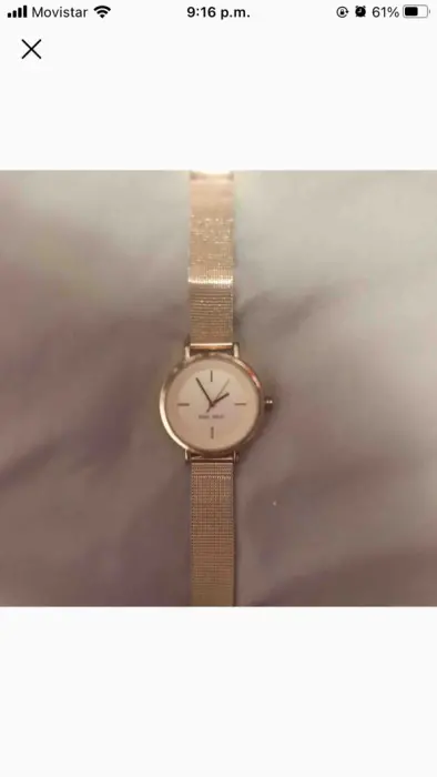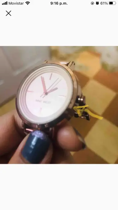 Lindo reloj en color oro rosado marca Nine West de acero inoxidable. Lente de vidrio con eslabones ajustables. Tiene dos pequeños detalles, uno alrededor del lente del lado derecho se rayo ligeramente y también de uno de los eslabones por la parte de atrás pero ambos detalles son poco visibles (en las dos ultimas fotos se pueden ver los detalles).