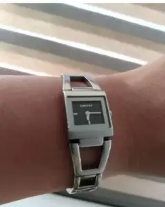 Bonito reloj en color plata con el interior Negro, usado, algunos rayones por el uso en el cristal pero no son muy visibles, lleva todos sus eslabones, tiene pila nueva!