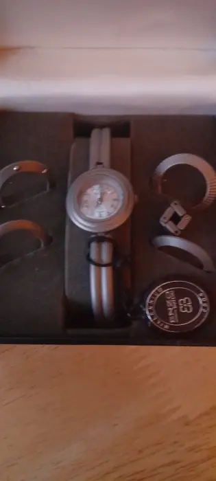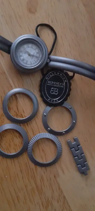 Reloj Enzo como nuevo, ENZO bottini edición millenium 2000, (vintage edición lmitada), Steel Black, caratula plata con 5 marcos de caratula intercambiables, en su caja original y eslabones extras oara ajuste a la muñeca. Prácticamente nuevo, ningún detalle. Se le removió la batería para evitar daño. Máquina japonesa.