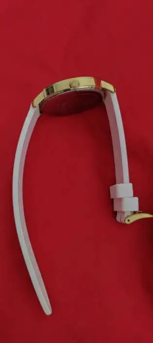Reloj Guess original color rosa 🩷, en buen estado, semi nuevo, correa de silicona ajustable de 16 CM con caja ,esfera dorada, manecillas doradas de acero inoxidable.. super linda 🤩 👌
