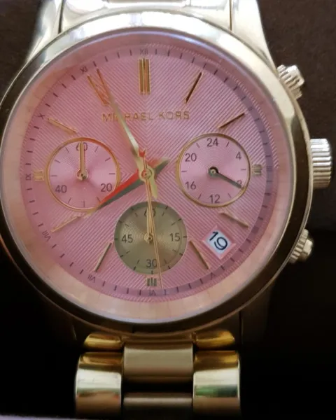 Bonito Reloj marca Michael Kors color oro con fondo rosa, seminuevo, excelente estado sin ningún rasguño