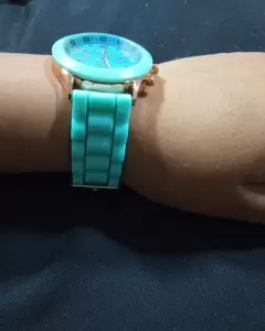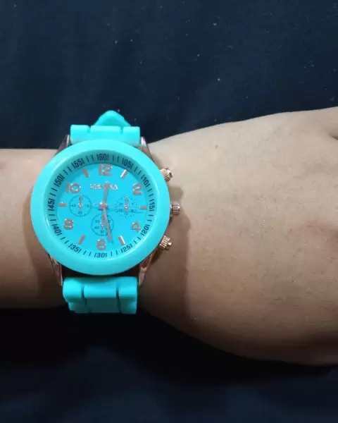 Reloj para dama. Forma del dial: redondoTipo de movimiento: cuarzoTipo de visualización: punteroBandaMaterial: gomaTipo de cierre: hebilla del Pintamaño y pesolongitud del reloj: 24.4 cmdiámetro del Dail: 3,8 cmespesor de Dail: 0,9 cmanchura de la banda: 2 cmpeso del reloj: 40g