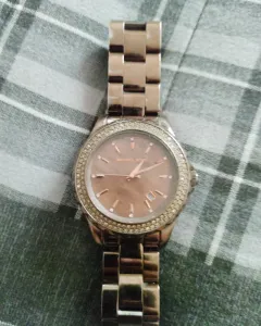 Roloj para dama. Reloj para dama original extensible de acero inoxidable chapado color marrón, tiene algunos detalles en el extensible por el uso