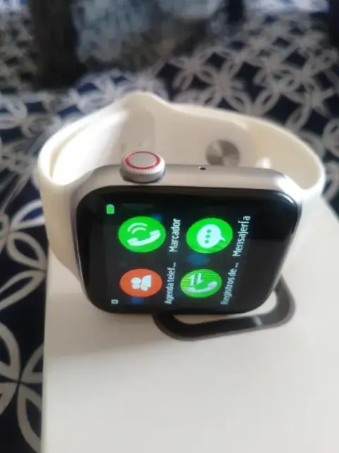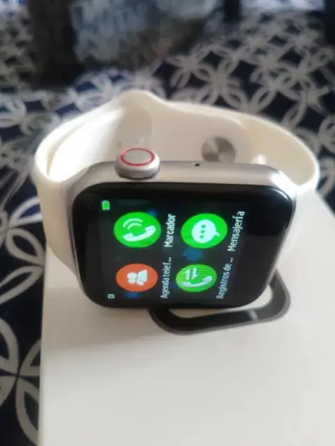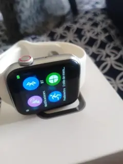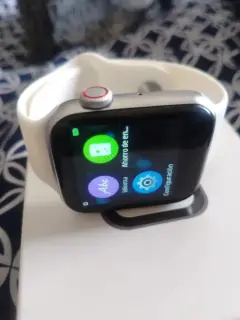 Smartwatch blanco. Recibe notificaciónes tiene calculadora agenda telefónica puedes hacer llamadas al vincular al teléfono se puede escuchar musica