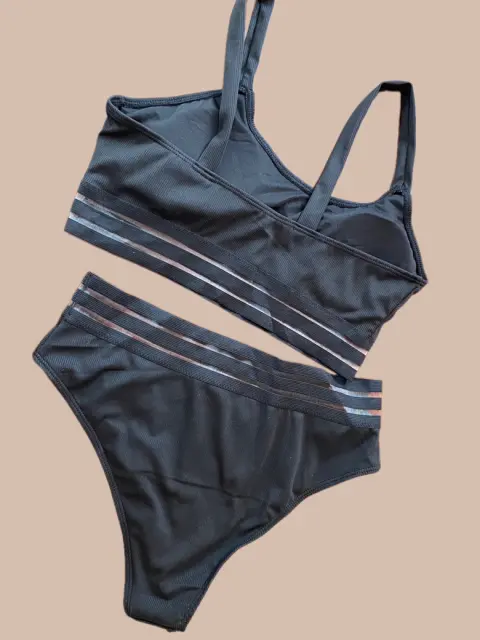 Bikini. Bikini en color negro de licra Con detalle de resorte en parte de calzón y brasier