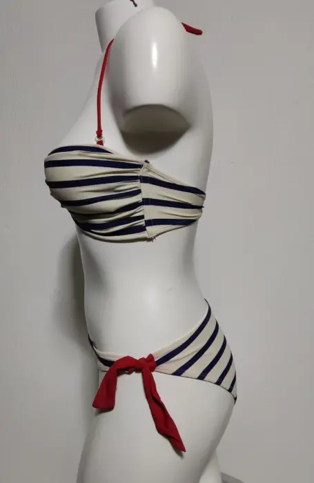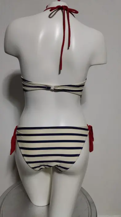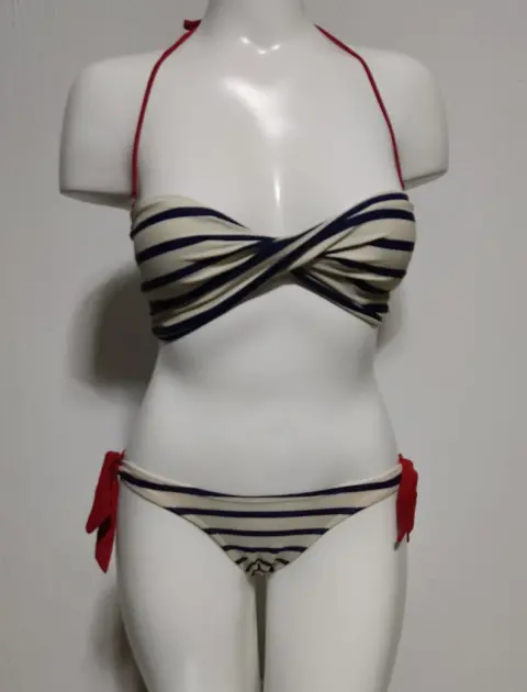 Lindo bikini con estampado de rayas,es buena calidad no se mueve ..(Nuevo) el brasier viene reducido como una talla menos..