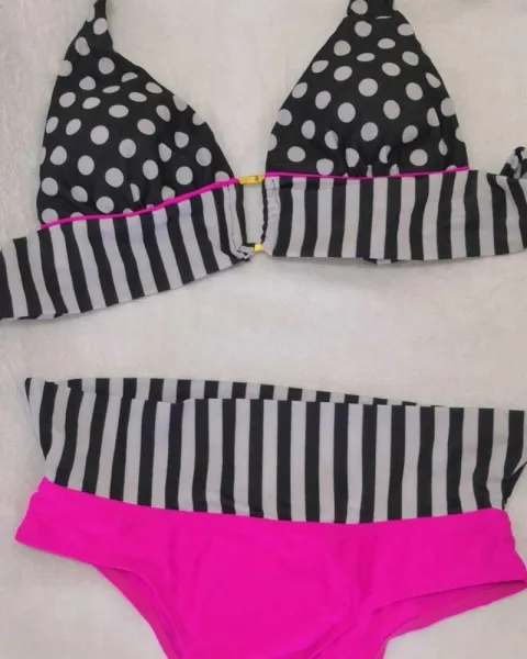 NUEVO BIKINI!! Lindo bikini la parte del bra tiene copas moldeadas y una hebilla en la parte del escote que lo hace coqueto con cintas ajustable, el bikini es de talle alto y con doble tela para más comidas y seguridad. Talla queda bien a una L