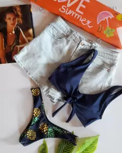 Nuevo set de bikini brasileño estampado de piñas es talla mediana.