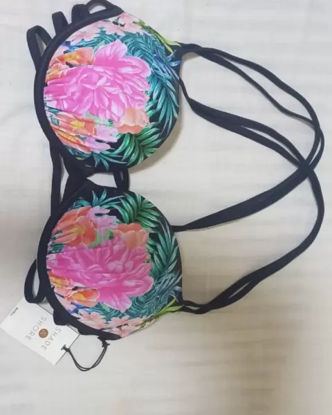 Bikini halter Push up. Top halter Push up con estampado floral, talla 36C.