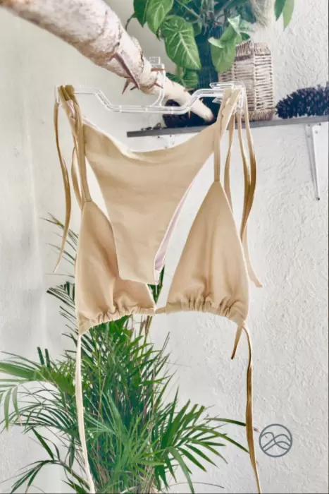 Bikini : Petricor color beige. ~Collection RESILIENCIA ~Diseño: AlbaLos diseños están creados para que puedas ajustarlos de diferentes maneras, disfrutarás de tener varios bikinis en una pieza.Colores: Tinto, Verde, Beige & Coral.