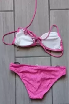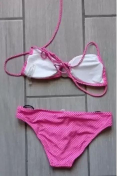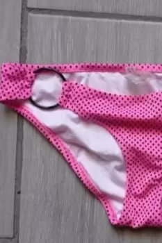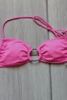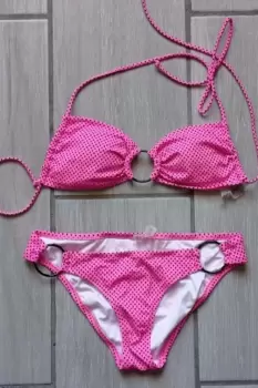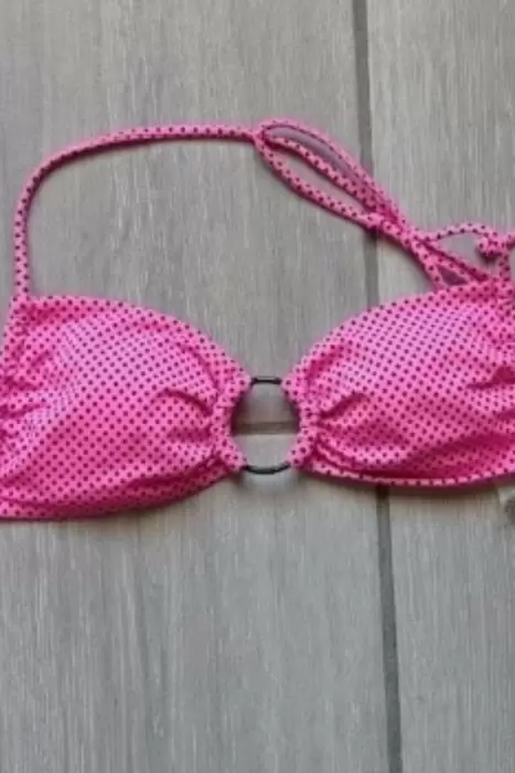Bikini rosa con lunares negros, con aros. Victoria's secretDos piezas: top con aro en escote y calzón con aros en los lados 🍑Nuevo!Muy sexy 🔥Excelente estado y calidad.