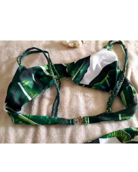 Bikini veraniego. Las fotos hablan por si solas :3. Esta muy padre. La talla dice XL, pero considero que quedaria mejor a una M, porque el top no es muy grande, y si eres talla grande de boobs, se te van a salir. xD. Trae protector