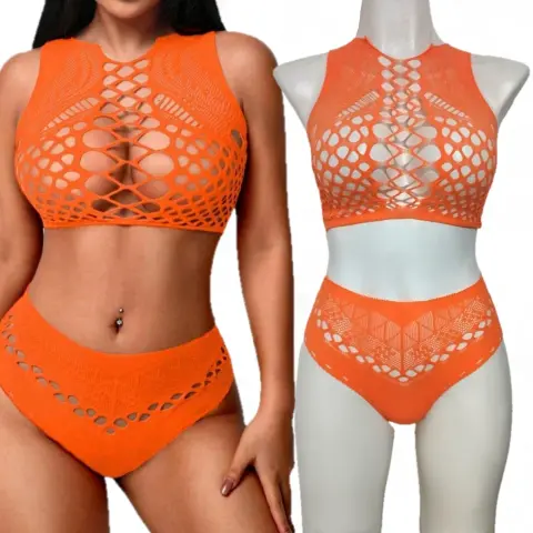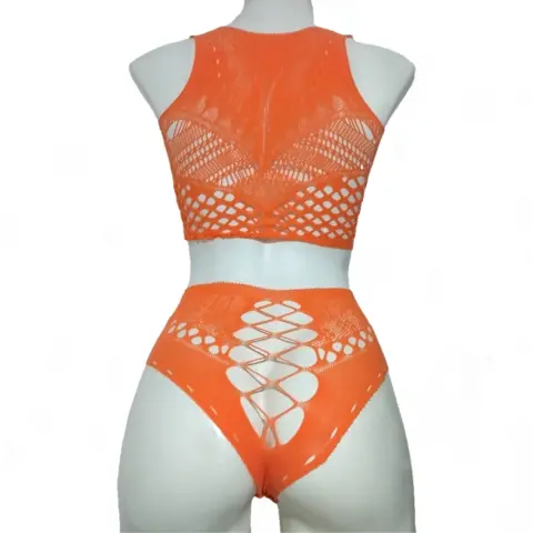 Conjunto De RedColor Naranja Material Elástico AltoUnitalla (XS-CH-MED-GRANDE Y EXTRA GRANDE)Úsalo como salida de alberca, playa , festivales, carnavales, fiestas temáticas, una noche divertida.Contenido 2 piezas top y bóxer, no incluye Bra ni Panty.Luce tu estilo y destaca tu belleza!