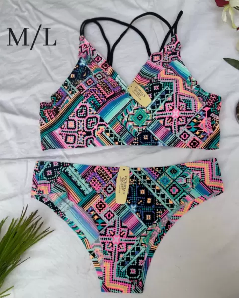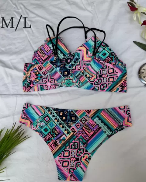 Hermoso coordinado geométrico. El coordinado no tiene costura por lo que no te deja marcas, tiene esponjas en el top pero se les puede quitar, se puede usar como coordinado interior o traje de baño ya que su tela es muy similar y no se despintaMaraca: Victoria (viene con etiqueta)Talla: Unitalla M/L ( tengo varias piezas disponibles)Composición: 85% spandex y 15% sintético Precio: $350