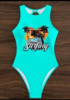 Hermoso!!! 💅💅☺️☺️🏝️🏝️traje de baño completo de estampado de surfing talla L con broche en la parte del cuello marca shein a estrenar sin etiqueta