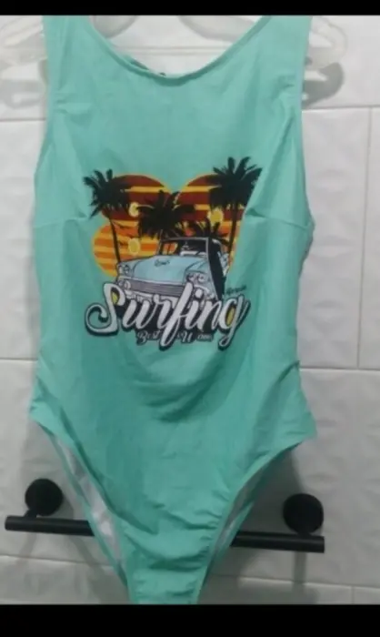 Hermoso!! 💅💅traje de baño completo. Hermoso!!! 💅💅☺️☺️🏝️🏝️traje de baño completo de estampado de surfing talla L con broche en la parte del cuello marca shein a estrenar sin etiqueta