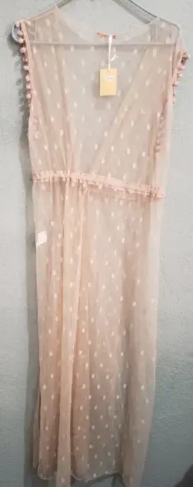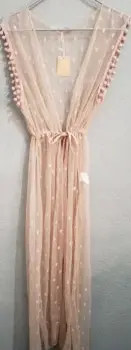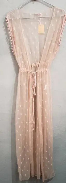 Kimono. Kimono largo Nude T/G transparente con cinta a la cintura.