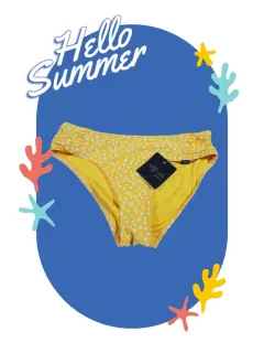 Nip Tuck bikini bottom Polka-dots. Nip Tuck bikini bottom calzon Polka-dots, talla mediana, color amarillo con puntos blancos, detalle arrugado a los lados, forrado por dentro, cubierta total en parte trasera, hecho de poliéster y elastano, mide 36cm de cadera con 26cm de alto, nuevo a estrenar con etiqueta
