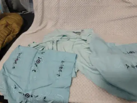 Pareo o Pañalero unitalla color azul difuminado, nuevo, con detalles bordados en piernas, de algodon