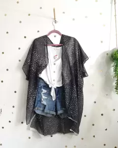 Luce espectacular en la playa con este pareo- kimono también puedes usarlo en tu outfit diario luce mucho!! Tejido ligero, fresco,suave y muy cómodo!! Nuevo!! Diseño súper lindo con puntos blancos fondo negro!! Unitalla queda perfecto desd talla XS hasta 3XL!! Para más modelos disponibles consulta mi clóset!! Con gusto resuelvo cualquier duda!!