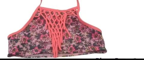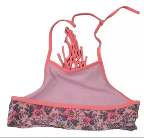 PARTE SUPERIOR BIKINI, MARCADA COMO TALLA M(reducida a 7/8 añ),NUEVO,COLOR NEON CON FLORES,MARCA XHILARATION,MIDE DE AXILA A AXILA 31 CM,DE ALTO 18 CM