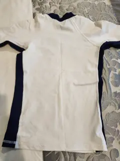 Playera Fullsand de niño color blanco con azul, en excelentes condiciones, ideal para las vacaciones y proteger a nuestros pequeños de los rayos solares. Talla XG de niño va bien hasta una talla 12