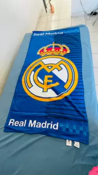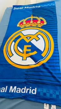 Toalla Real Madrid color azul mide 1.45 cm buena calidad y absorción. Estado:Totalmente Nueva