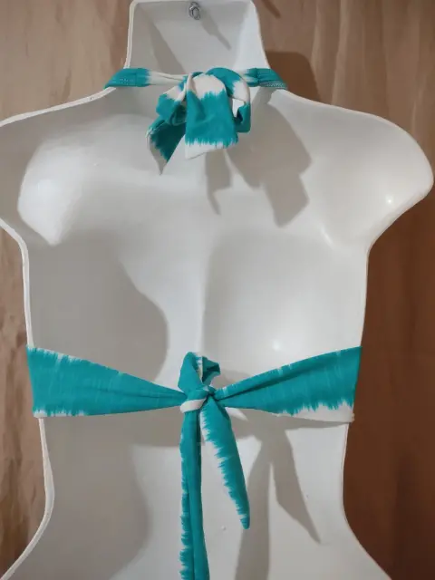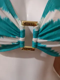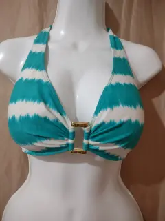 Top verde con blanco. *Solo es el top*Nuevo, talla L (12).Con herrería al frente y copas preformadas, se anuda a la espalda y en el cuello.80%poliester - 20% elastano