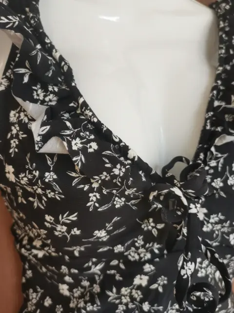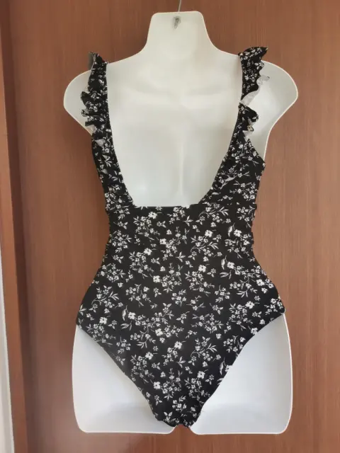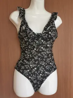Traje de baño talla S en color negro con detalles de flores blancas