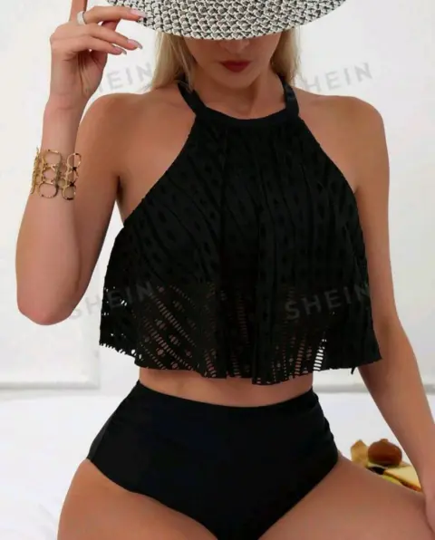 Traje de baño, dos piezas, bikini y top color negro, talla S, nuevo, ideal para la playa