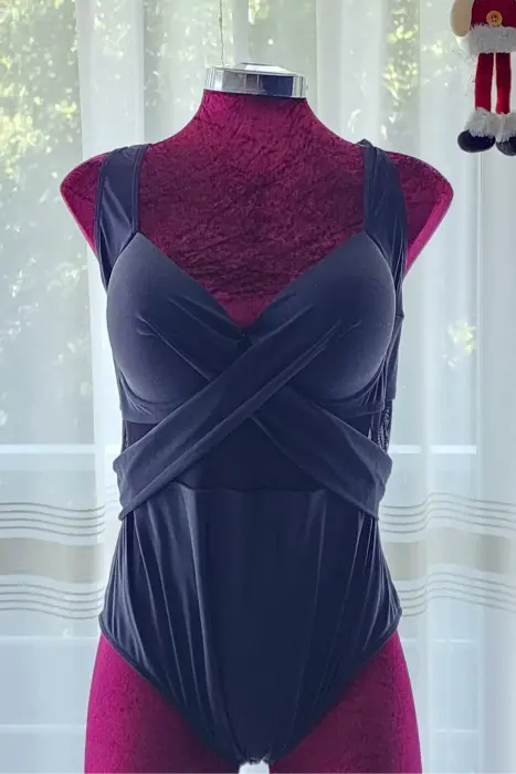 Medidas: hombro a hombro 47 cm / cintura 45 cm / cadera 51 cm / largo 44 cmComposición: 82% poliéster, 18% spandexElasticidad alta