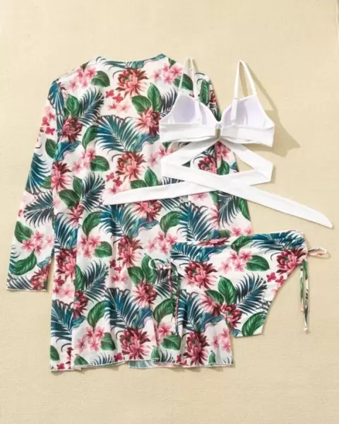 Traje de baño 3 piezas. 3 Piezas Bañador Bikini Floral Tropical Con KimonoTalla M NUEVO