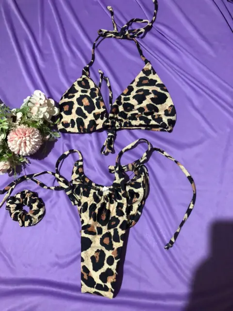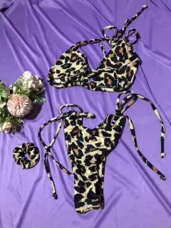 Traje de baño en talla S de 2 piezas en animal print incluye liga para pelo o como accesorio. Nuevo
