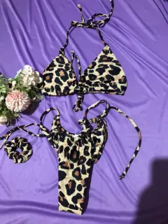 Traje de baño animal print. Traje de baño en talla S de 2 piezas en animal print incluye liga para pelo o como accesorio. Nuevo