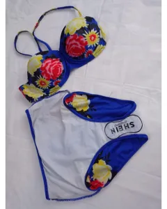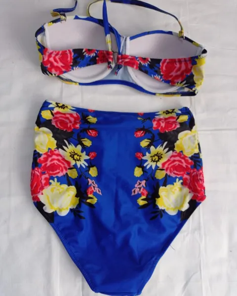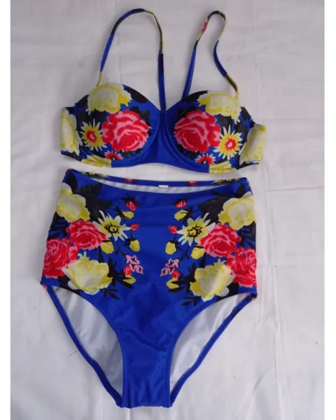 Traje de baño cintura alta talla S, con copas preformadas (32b), estampado floral. Guia de tallas última foto