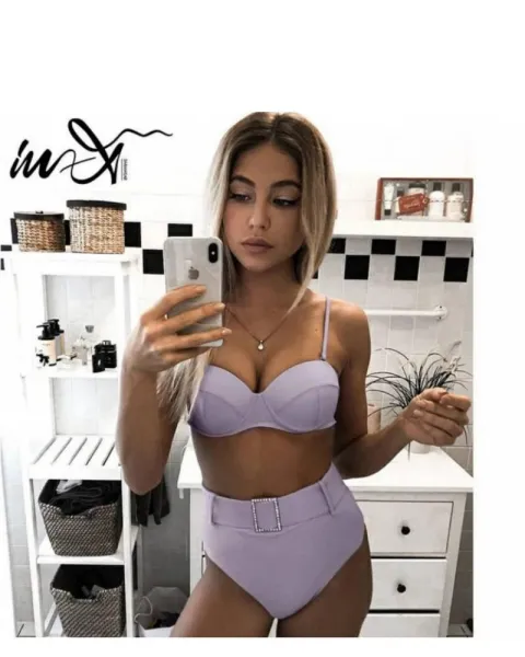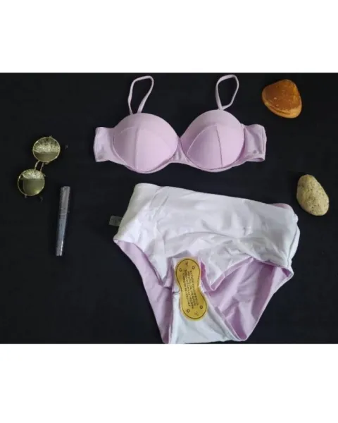 Traje de baño cintura alta. Traje de baño cintura alta talla M, con copas preformadas (34b), color lila, con piedras brillantes en el cinturón. Guia de tallas última foto