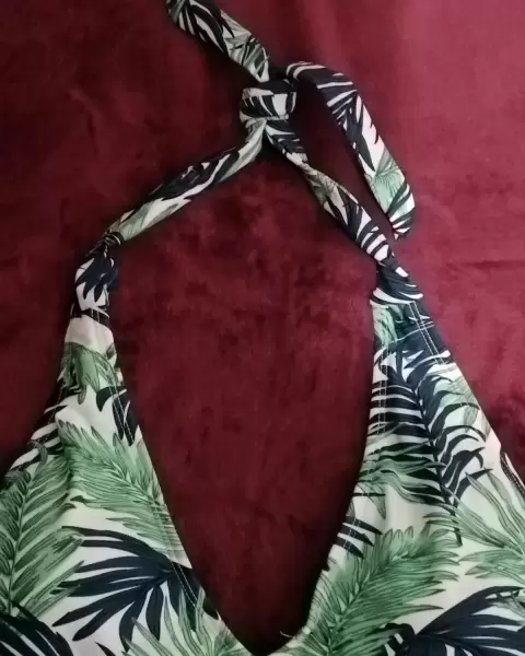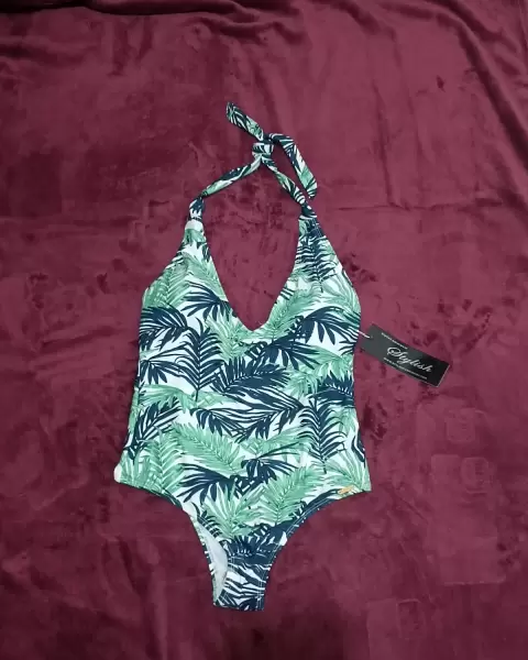 Traje de baño completoColor verde, estampado de palmeras.Nuevo.Talla: M da a 36 B