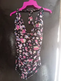 Traje de baño completo. Traje de baño floreado tipo halter con pliegues al frente que te ayudan a dar mejor figura en tu cuerpo, marca ilusión