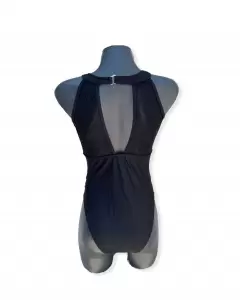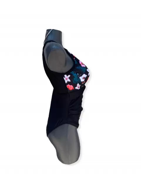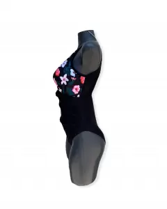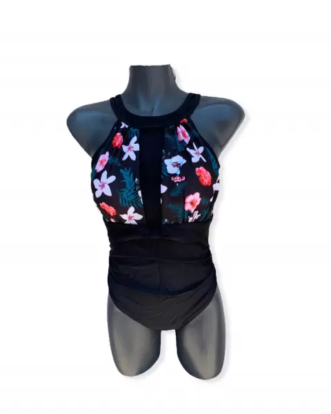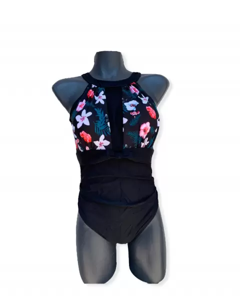 Traje de baño completo en color Negro, talla M.. Traje de baño completo en color negro con detalles estampados, talla M, de la marca SHEIN.