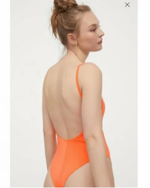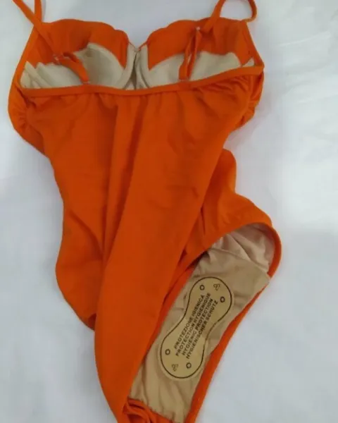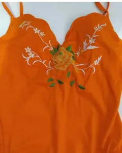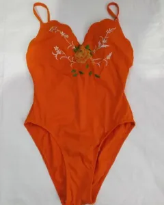 Traje de baño completo naranja. Traje de baño bordado, completo, talla M, con varillas en el top, estampado floral.