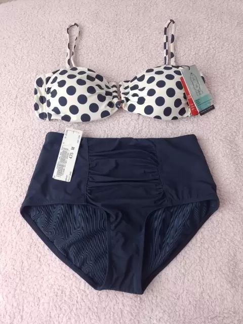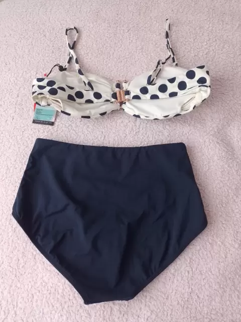 Traje de baño de 2 piezas. Incluye calzon alto y brassier con copas que se pueden retirar.También los tirantes son desprendibles y multifuncionales.