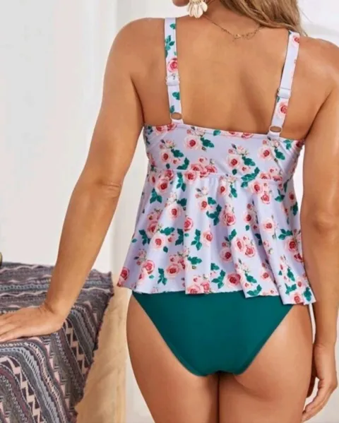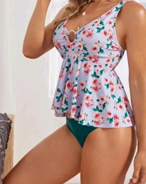 Traje de baño floreado. 💖 Hermoso traje de baño las fotos no le hacen justicia, ideal para ocultar gorditos, la tela es suave.💕 Nuevo sin detalles.